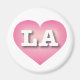 This magnet features a pink heart with a white-washed centre containing the bold white upper case letters LA, the official abbreviation for Louisiana or Los Angeles.