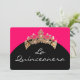 This modern style 5x7 invite is shown created in a Hot Watermelon and Black colour scheme with White text.