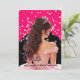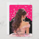 This modern style 5x7 size invite is shown created in Hot Watermelon and Black colour scheme with a young lady.