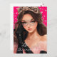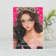 This modern style 5x7 size invite is shown created in Hot Watermelon and Black colour scheme with a young lady.