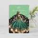 This modern style 5x7 size invite is shown created in Green and Black colour scheme with a young lady.