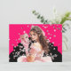 This modern style 5x7 size invite is shown created in Hot Watermelon and Black colour scheme with a young lady.