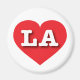 This magnet features a vibrant red heart containing the bold, white, upper case letters LA, the official abbreviation for Louisiana, the pelican state, or Los Angeles, the city of angels.