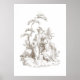 Elevate your space with this 40x60 inch vintage-style poster, "La Terre" from the series "The Four Elements." This exquisite artwork features an intricate black-and-white engraving, showcasing an elegant scene of two figures engaged in peaceful, contemplative gardening. The fine details highlight the serene interaction between nature and humanity, with the figures surrounded by lush potted plants and a delicate tree, evoking a sense of balance and harmony.