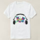 Casque d'écoute pour musique et au milieu des couleurs symbolisant la musique, avec un jeune qui danse.