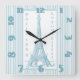 La Tour Eiffel 1889 - Teal blue and white ticking stripes behind an image of the Eiffel Tower, stitched onto the ticking. The Eiffel Tower was built as the entrance arch for the 1889 World Fair - Exposition Universelle, which marked the centennial celebration of the French Revolution.