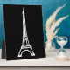 The Eiffel tower. White stylised illustration. The background colour is customisable