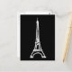 The Eiffel tower. White stylised illustration. The background colour is customisable