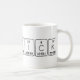 Lab Chick spelled out as La B C H I C K (Lanthanum Boron Carbon Hydrogen Iodine Carbon Potassium) on a mug for the scientist who knows what she wants.