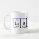 Lab Hunk spelled out as La B H U N K (Lanthanum Boron Hydrogen Uranium Nitrogen Potassium) on a mug for the scientist who know what he wants.
