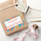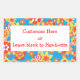 A sheet of colourful Stick-on Labels with an all-over pattern of red, orange, yellow flowers on a bright turquoise background, from a handpainted paper collage by Judy Adamson. (Delete the text if you want to leave the labels blank to write on by hand.) So many uses!