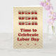 A Labour Day Card that glitters in gold, red and silver. The background is gold with chevron stripes. The initials USA is in silver and cranberry, and is repeated two other times and the balance of the writing on the card is in cranberry. There are three stars under the writing. Very patriotic Labour Day design. Thanks to the hungryjpeg for some of the elements in the design.