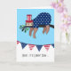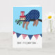 This is a humourous Labour Day card featuring an illustration of a contented sloth, lazing dreamily on a branch. The sloth is wearing a blue with white stars outfit, with red and white top hat. Beneath the sloth is some American flag coloured bunting, placed at a angle across the frame. The text in the lower section of the card reads: 'Yes! It's Labour Day ... ' The default inside card text reads: '... time to activate horizontal celebration mode'.