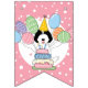 Make your black & white labradoodle's birthday special with our adorable dog-themed design featuring a party hat and colourful balloons.