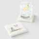 The coasters are gorgeous, a quality feel and heavy weight. They look like a precious archeological find. A rustic stone juxtaposed with a modern floral black and white print. I like the way the print goes slightly imperfect on the cut stone edges giving them a kind-of natural beauty.