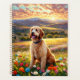 Labradoodle dog in beautiful field of flowers with sunset. Puzzles, puzzles in tins, planners, notebooks with this design in my stores. Add text to personalise.. Lots of pet and scenery designs in my stores. Add this design to other products. Add text.