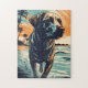 Colourful graphic art design of a labrador at a tropical beach with palms. Awesome gift for Labrador owner and Labrador lover.