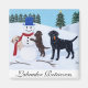 Whimsical Labrador Retriever painting painted by Naomi Ochiai from Japan. Nice for dog lovers who love Labrador Retriever dogs. Yellow Labrador and Chocolate Labrador and Black Labrador are all painted in the picture. Three Labrador dogs are playing with their snowman in the white snow field. Typical Christmas Holiday season scene. You can customise text and more!