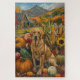 Celebrate the beauty of fall with this vibrant painting of a dog sitting beside a bountiful Thanksgiving harvest. The rich autumn colours of pumpkins, sunflowers, and rustic farmhouse scenery create a warm and inviting atmosphere, perfect for any dog lover's seasonal décor.