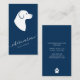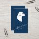Beautiful modern design for veterinarians featuring Destei's white dog silhouette. The dog resembles a Labrador Retriever or similar dog with hanging ears. The "dog trainer" profession is written in a lovely modern script font together with a personalizable text area for a name. The text on the front is slightly tilted to create an interesting visual look. On the back there is Destei's white dog paw print silhouette together with a personalizable text area for business information. The blue background colour can be changed to any other colour in the design tool, if so wished.