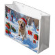 Labrador Dog Running in Snow with Christmas Hat Large Gift Bag