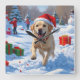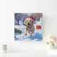 Labrador Dog Running in Snow with Christmas Hat Square Wall Clock