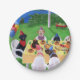 Labrador Party Paper Plates!  Whimsical and funny Labrador Retriever Painting painted by Naomi Ochiai from Japan.  Wonderful Labrador gifts for Labrador lover's home. Treats for yourself, too. Black Lab, Chocolate Lab, Yellow Lab are all painted in the picture.   Happy Labradors celebrate their dog friend's birthday party in the garden!!