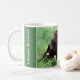 This mug features my digitally edited close-up photograph of a chocolate Labrador Retriever lying in lush green grass and purple flowers as a placeholder photo. Keep this photo or replace it with one of your favourite horizontal photos. Personalise the text on both sides of the handle.
