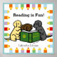 Whimsy and funny Labrador Retriever dog cartoon created by Naomi Ochiai from Japan. Cute Black Labrador and Yellow Labrador and Chocolate Labrador dogs having fun with their precious book! Reading is fun for kids and everybody. :) You can customise text and more! Nice for library reading program.