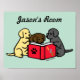 Cute Book Lover Labrador Nursery Art. Whimsy and funny Labrador Retriever dog cartoon created by Naomi Ochiai from Japan. Cute Black Labrador and Yellow Labrador and Chocolate Labrador dogs having fun with their precious book! Reading is fun for kids and everybody. :) You can customise text and more! Nice for library reading program.