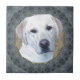 This ceramic tile features a portrait of a lovely Labrador framed in a classical combination of geometric contours and textures reminiscent of carved marble. Soft earth tones compliment most home decor. Personal sentiments may be added using the customising text tool. Two tile sizes are available, and frames or wooden keepsake boxes may be ordered to enhance your ceramic tile. A distinctive gift for any dog lover or an unique dog show trophy.