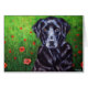 Reproduction of an original acrylic painting by Michelle Wrighton of Poppy, a gorgeous black Labrador Retriever dog, sitting in a field of red poppies