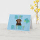 A cute photo of Labrador Retriever dog wishing "Happy Birthday" and balloons and blue polka dots in background adds colours to this beautiful card.
