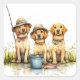 Cute illustration of dogs fishing. Wearing fishing hats and holding a fishpole on a lake. Perfect for pet lovers or dog parents who enjoy fishing.