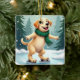 Labrador Retriever Ice Skating Christmas Painting Ceramic Ornament
