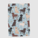 Cute Labrador Retriever dogs with black, chocolate, red and yellow coat colours. Lab dogs with paw prints and dog bones pattern.