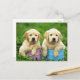 Aww...Who can resist the sweet face of a Labrador Retriever Pup? This charming canine post card features two yellow labrador retriever puppies oustside playing in pails highlighted against a green grass background. These sweet pups are ready to help you send smiles to family and friends.
