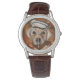 The watch looks really great! Very sharp and well done. The leather band is really nice, though for a man's watch I think it should be longer. Unfortunately, it isn't big enough for my husband's wrist but I will get a replacement because he is very excited to wear it!