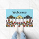 Labrador Trio Watching You Welcome Doormat for Labrador Fans! Innocent looking Black Labrador and Yellow Labrador and Chocolate Labrador are watching you behind the flowerbed and they look like they want to say something to you! Whimsy and funny Labrador Retriever Dog Cartoon created by Naomi Ochiai from Japan.