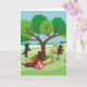 Labradors and Happy Tree Card for Labrador Fans! Each Labrador enjoys under their Happy Tree with yummy fruits and ice cream and fun! Black Labrador and Chocolate Labrador and Yellow Labrador are all included in the picture. Created by Naomi Ochiai.