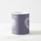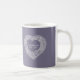 Lace wedding anniversary mug, customise with your own year of marriage, names and a photo in the heart. Example reads: Lace 13th Anniversary and your dates. Lace heart effect art and design by Sarah Trett for www.mylittleeden.com on zazzle.