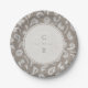 Elegant neutral vintage floral lace and burlap design with couple's monogram,  great wedding paper plates for rustic wedding, country wedding party all year long, particularly in winter.