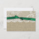 Pretty white lace over burlap and accented with a dark green bow to match our invitations. All parts of this invitation are printed, there is no real bow, burlap or lace attached. Contact this designer for more colour options!