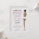 Give the bride-to-be a sexy lingerie shower with these chic invites featuring the bride in nothing but her heels and panties! Lace lingerie material background with bra and panty set on back with bride’s sizes. Multiple options available to customise the brides hair style, hair colour, and skin tone.