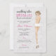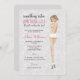Give the bride-to-be a sexy lingerie shower with these chic invites featuring the bride in nothing but her heels and panties! Lace lingerie material background with bra and panty set on back with bride’s sizes. Multiple options available to customise the brides hair style, hair colour, and skin tone.
