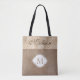 Lace Burlap Modern Rustic Trendy Monogram Tote Bag