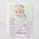 Baptism Invitation. Pretty silver bow & cross with pink jewels. Customise with your own details & photo. Please note all flat images! they do not have real lace, bow or jewels!