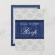Lace & Denim Damask Western Wedding RSVP Cards---match the invitations and more found below on this page.These RSVP cards are set to high quality basic card stock; however, you can change the stock to linen, felt (embossed), recycled, and several metallic shades if you would like under number 2 (choose your style, size & paper type) below the orange add to cart button. A list of the additional costs for a fancier card stock are displayed also under that option. Each RSVP comes with a fitted white envelope.