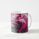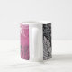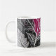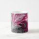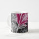 Lace Effect Floral Leaf Coffee Mug in Fuschia Pink, Black, Gray and White.