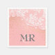 Pink vintage wedding paper napkins with glamour lace and gold confetti dots